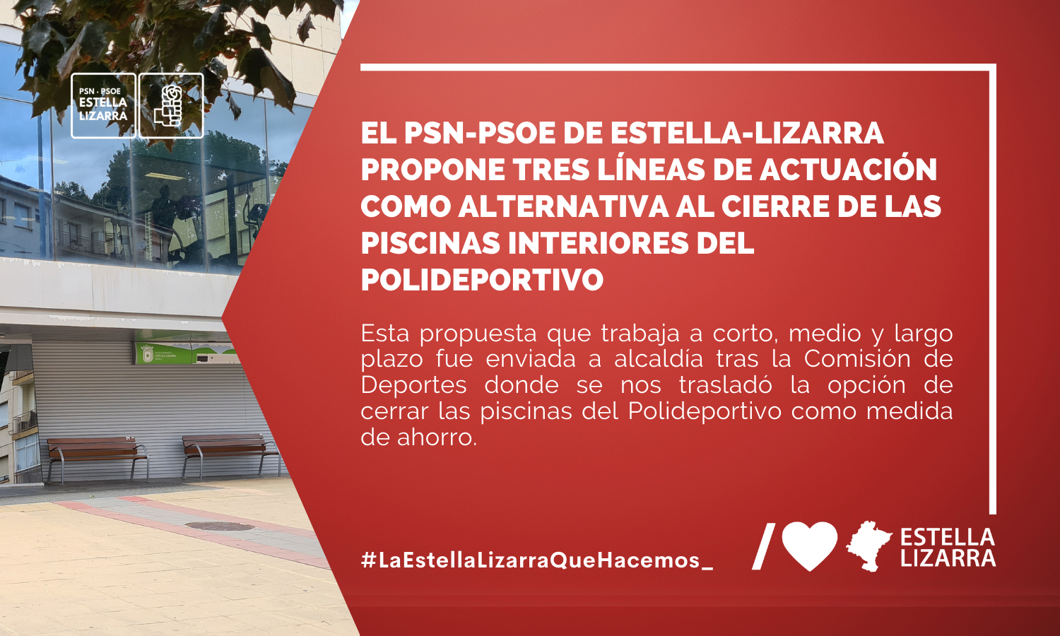Desde el PSN-PSOE de Estella-Lizarra enviamos a alcaldía nuestra alternativa al cierre de las piscinas interiores del Polideportivo, durante el verano, propuesta por el equipo de gobierno como medida de ahorro ante el aumento de los costes energéticos.